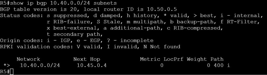 Let’s do one final test, though. What happens if we kill the link between R4 and R5?