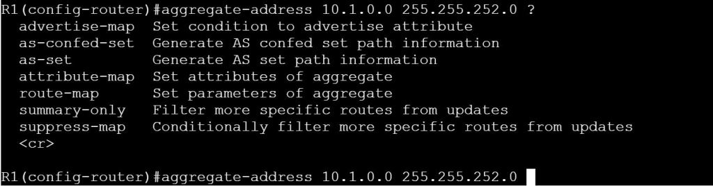 aggregate-address 10.1.0.0 255.255.252.0 summary-only