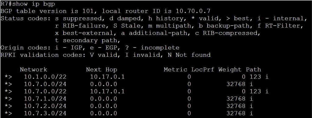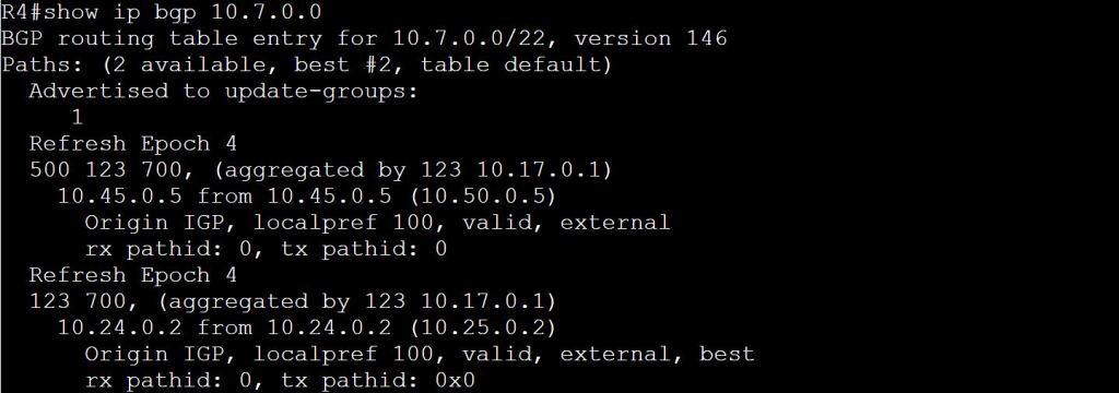 Let’s see what happens on R4 if we use aggregate-address on R7: