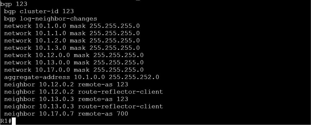 This brings us to the as-set command. This will tell the aggregator to include an unordered AS list. So in our case, R1 should include AS 700 in it’s path attributes.