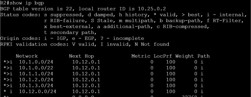 We can use suppress-map to send the summary, but also filter out some of the individual routes. This is similar to what we did with Task 2, but it affects all neighbors. Let’s try to suppress 10.1.0.0/24, 10.1.1.0/24, and 10.1.3.0/24. The end result should be that we’re advertising the summary route, 10.1.0.0/22, plus the 10.1.2.0/24 route only.