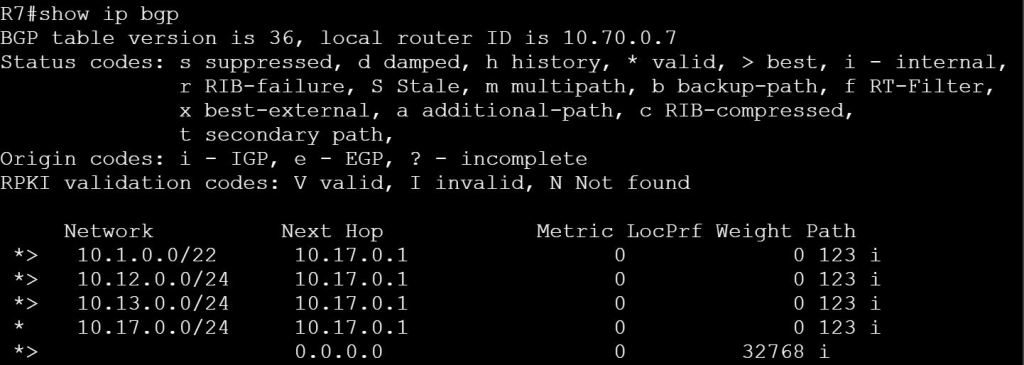 This looks like a recipe for a routing loop. Let’s see what R7 thinks about all of this: