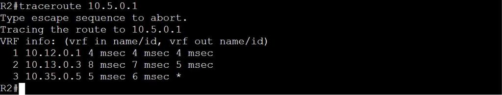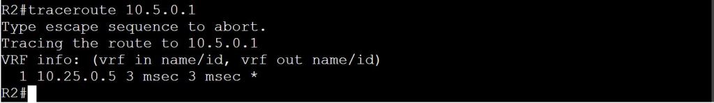 Since the Local Preference is now higher on R2, which path will R2 take to get to the directly connected neighbor R5 in AS 500? Ideally, we’d want to go direct via 10.25.0.5… let’s do a traceroute and see: