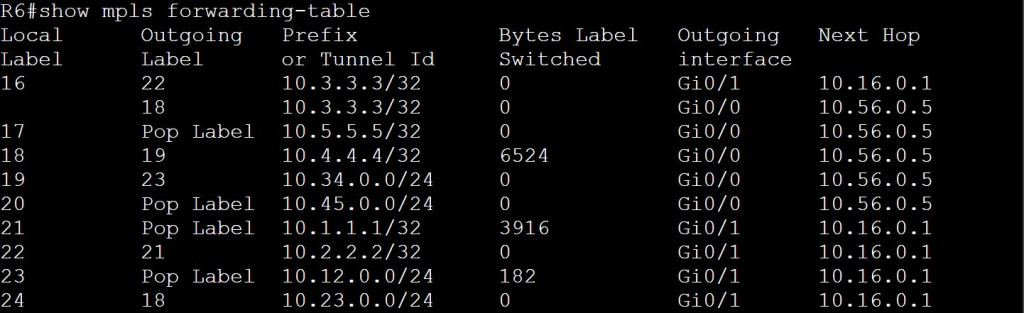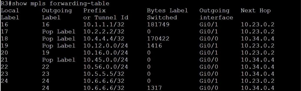 - These received bindings are what we see as “Outgoing Labels” with the show mpls forwarding-table command.