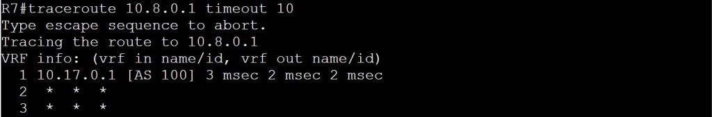We want to get traffic between 10.7.0.1 in AS 700 to 10.8.0.1 in AS 800.