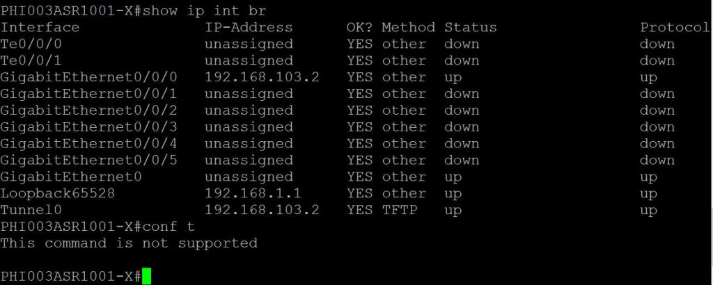 One quick thing to point out, the CLI is on lockdown. We can do show commands, but no configuration.