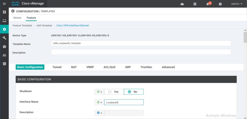 One more time through, but this time using the Cisco VPN Interface Ethernet feature template to add Loopback0.