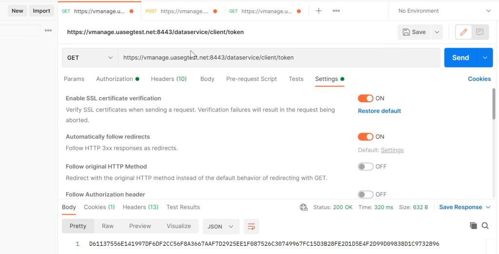 I tried a bunch of things with the cert, like using the FQDN instead of the IP. Google searches led me to believe that there was something wrong with my vManage cert. As a sanity check, I tried the same API call from POSTMAN that DNAC is trying and it worked fine.