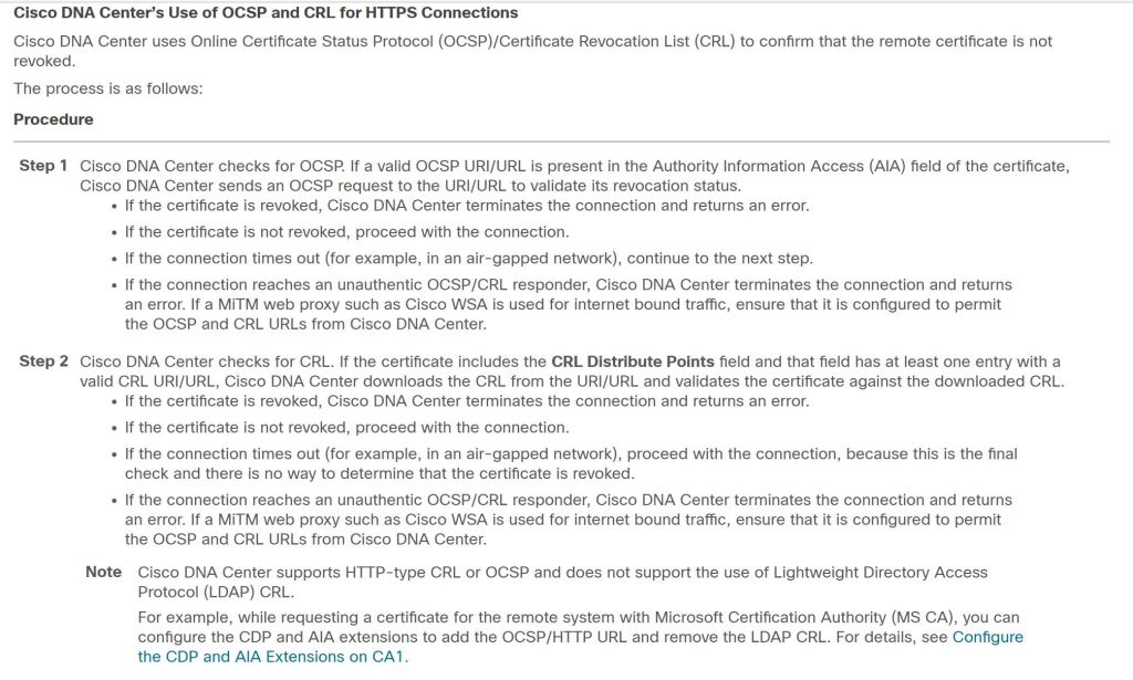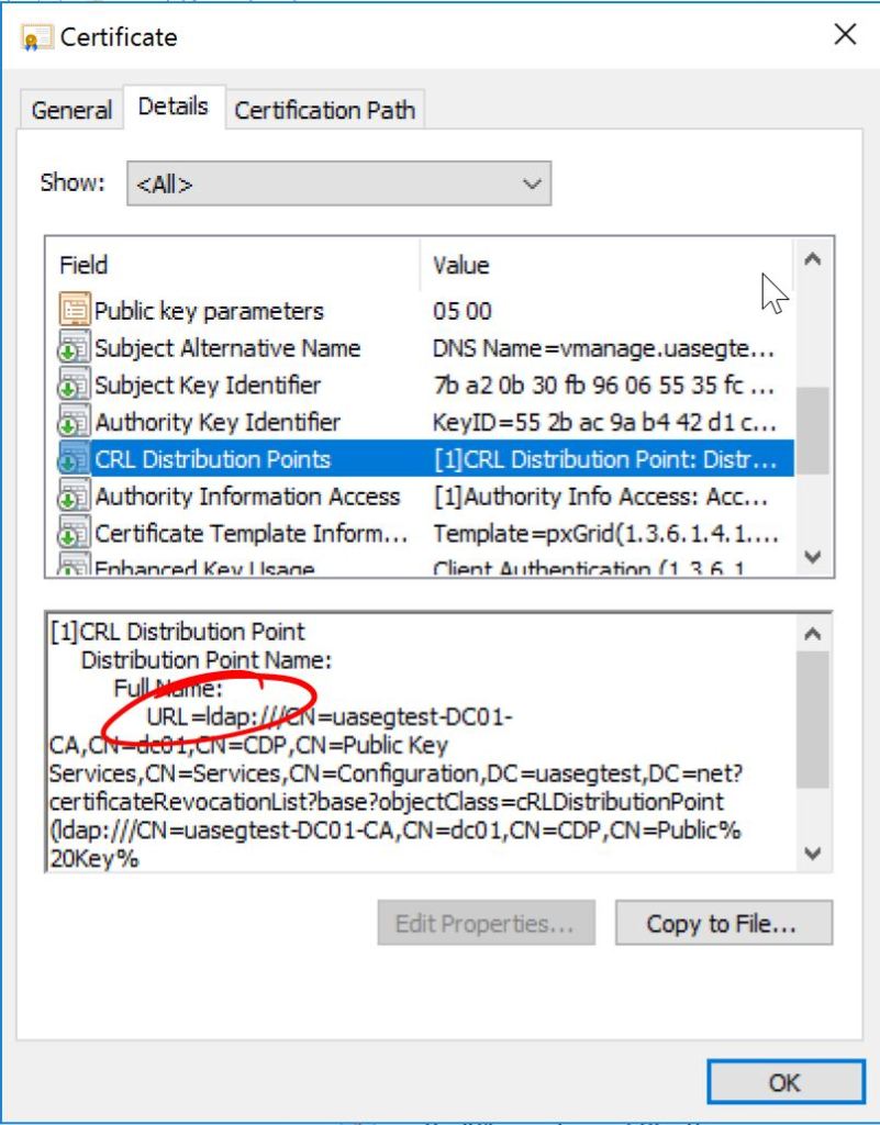 Towards the bottom there we have an interesting note: DNAC doesn’t like LDAP CRL’s. Well let’s take a closer look at our vManage cert.