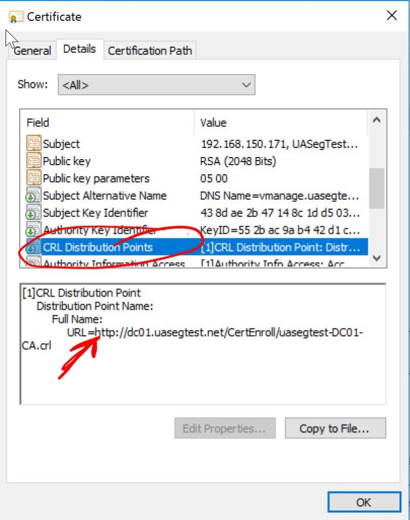Let’s take a look at our fresh new cert and verify the CRL Distribution Points.